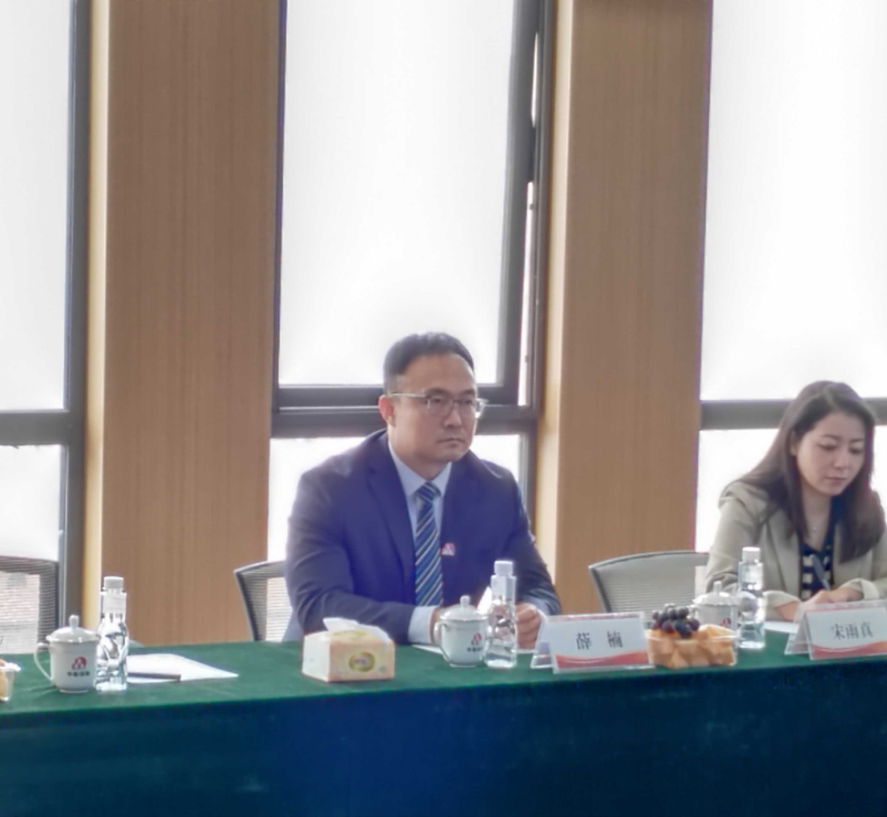 随后,薛总和任会长一行在会议室进行了座谈会。在观看完公司简介视频后,双方领导分享了彼此感悟并交流了意见,任会长对中昕的各个项目表示肯定。会议现场氛围愉悦,交谈融洽。